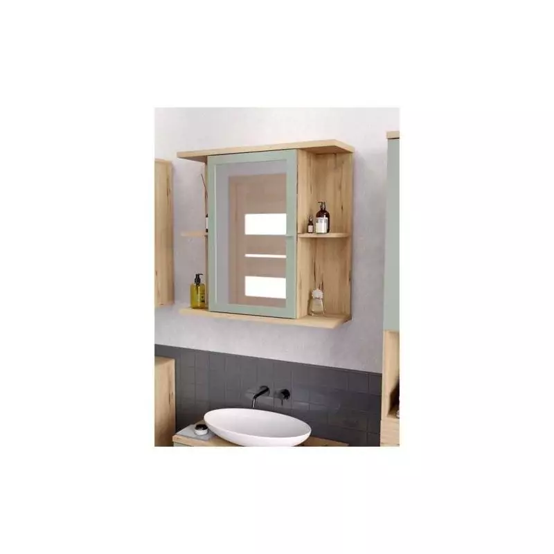 Offrez-vous un espace de rangement pratique et esthétique avec cette armoire à suspendre en Chêne artisan et Vert sauge. Ajoutez une touche de modernité à votre salle de bain tout en profitant d'un meuble fonctionnel et de qualité.