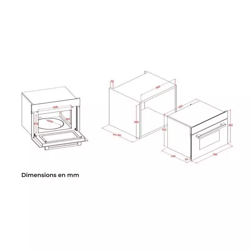 Ce four à micro-ondes polyvalent est équipé d'une fonction combiné gril, vous permettant de gratiner vos plats préférés pour un résultat croustillant et doré à souhait. Grâce au modèle CEMO34CEB3, vous bénéficiez d'un appareil encastrable aux dimensions de 59,5 x 38,3 x 49,2 cm, parfait pour s'intégrer harmonieusement dans votre cuisine.
