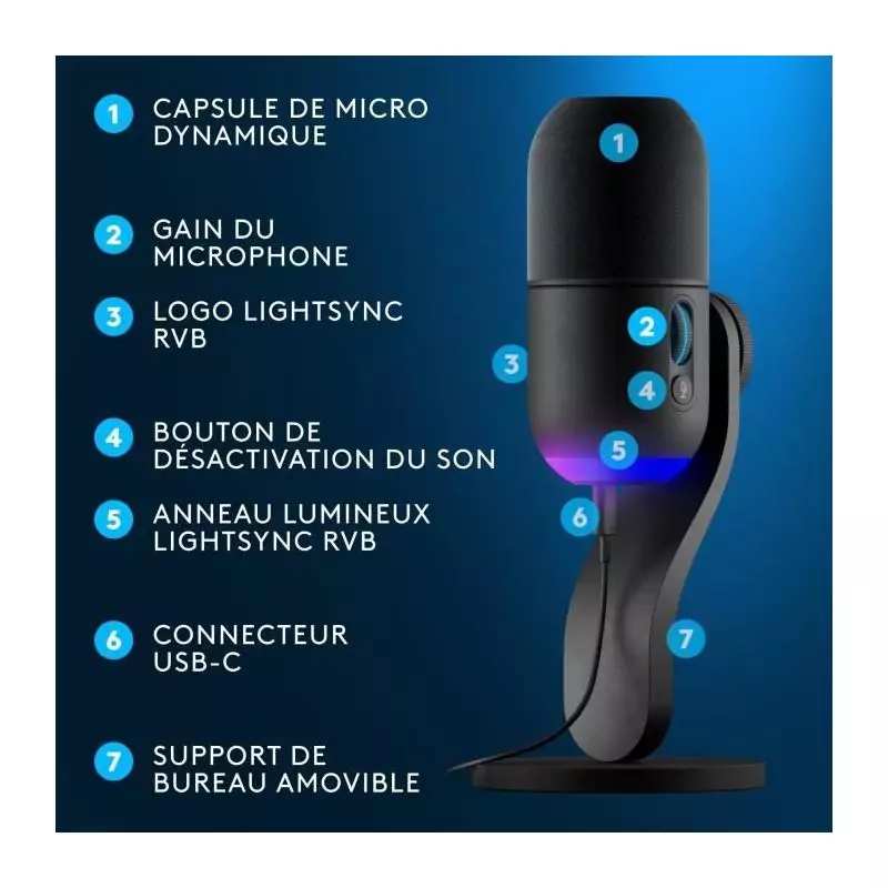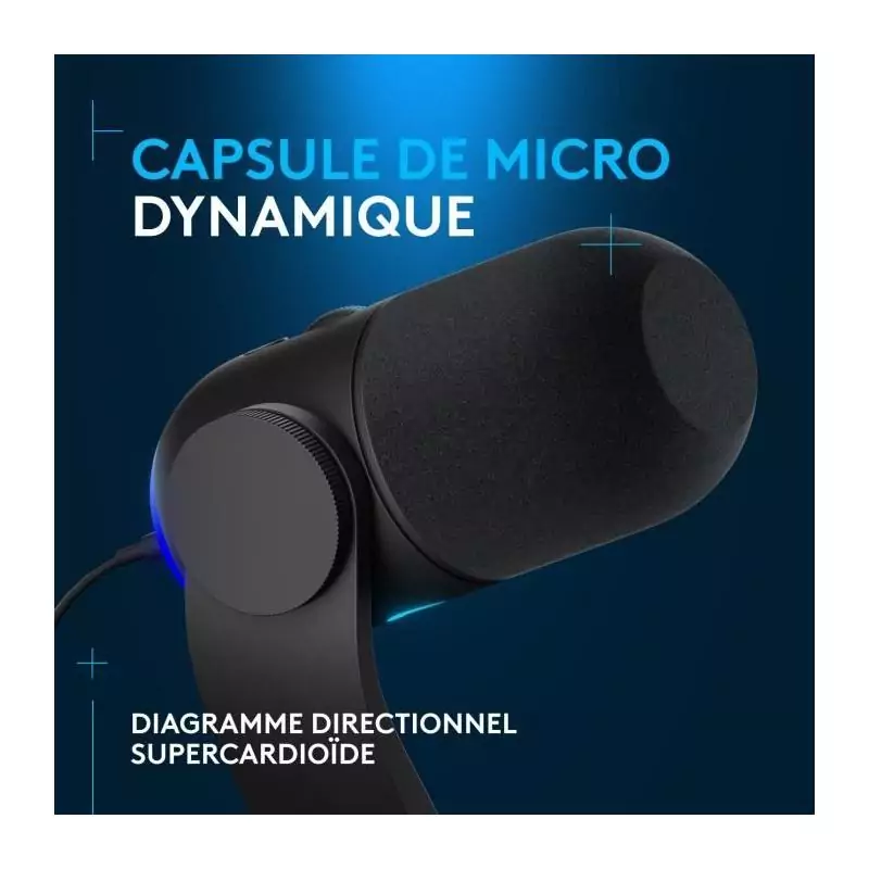 Microphone - Filaire - Logitech G - Yeti GX - Compatible PC et MAC - Noir
