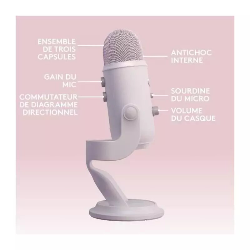 Microphone gamer - Filaire - Logitech G - Bleu Yeti - USB - Blanc