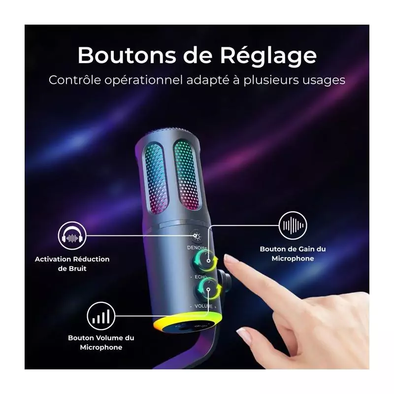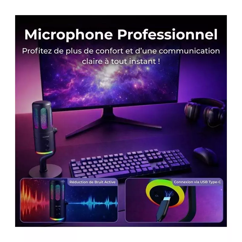 Microphone Gaming RGB Streaming - THE G-LAB - K-MIC-NEON - Compatible multiplateformes et logiciel - Qualité audio pro - Noir