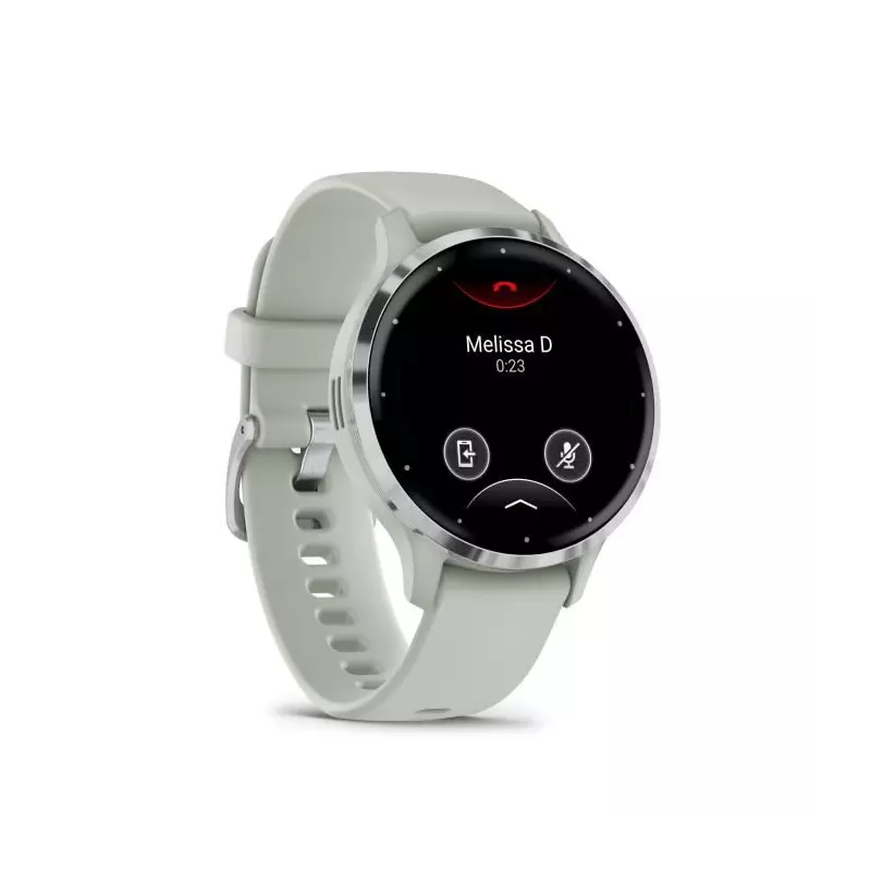 Montre GPS connectée - GARMIN - Venu 3S - 30,4mm (1,2) - Acier Silver, boîtier vert sauge et bracelet en silicone vert sauge