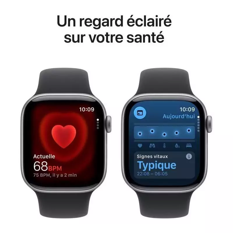 Avec son GPS intégré, vous pouvez suivre vos itinéraires de course ou de vélo sans avoir besoin de votre téléphone à proximité. Que vous soyez un athlète passionné ou simplement à la recherche d'un moyen pratique de rester connecté, l'Apple Watch Series 11 GPS est le compagnon idéal pour toutes vos aventures quotidiennes.
