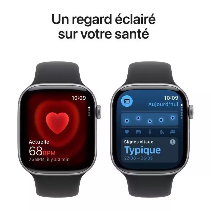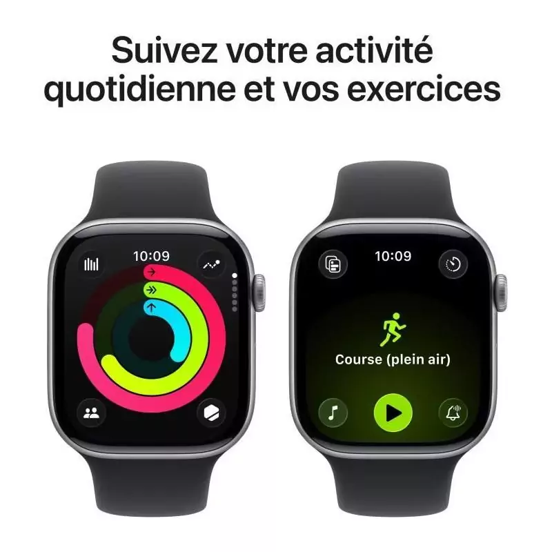 L'Apple Watch Series 11 GPS de 46 mm est une montre intelligente de haute technologie qui allie élégance et fonctionnalité. Avec son boîtier en aluminium gris espace et son bracelet noir en silicone sport, elle offre un design moderne et polyvalent qui s'adapte à tous les styles.