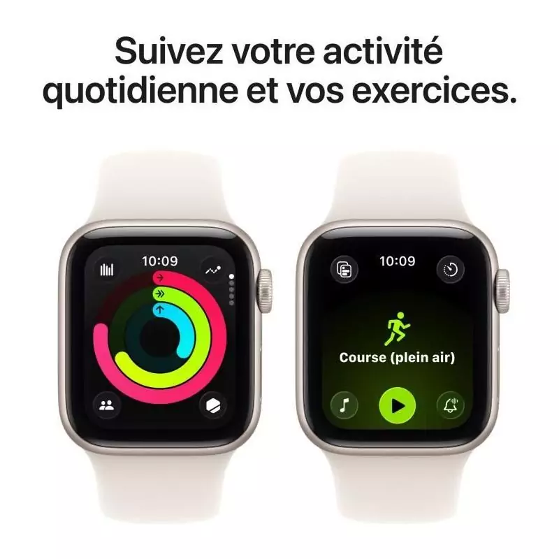 Découvrez l'Apple Watch SE 3 GPS 40mm avec boîtier en aluminium Starlight et bracelet Sport Band assorti. Profitez de toutes les fonctionnalités d'une montre connectée : suivi d'activité, notifications, apps, et bien plus encore. Léger, élégant et performant, cet accessoire intelligent vous accompagnera partout. Idéal pour rester connecté(e) et actif(ve) au quotidien. Montre Bluetooth de qualité supérieure pour une expérience unique. Offrez-vous le meilleur de la technologie avec l'Apple Watch SE 3.
