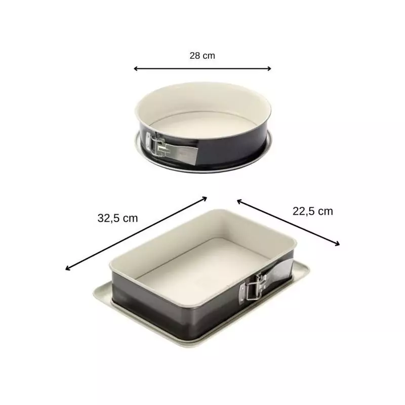 Avec ses dimensions de 28 cm et 28 x 18 cm, ces moules offrent une capacité adaptée à la préparation de diverses recettes. Que ce soit pour un gâteau d'anniversaire, une tarte ou même un dessert plus élaboré, ces moules s'adapteront parfaitement à vos besoins culinaires.