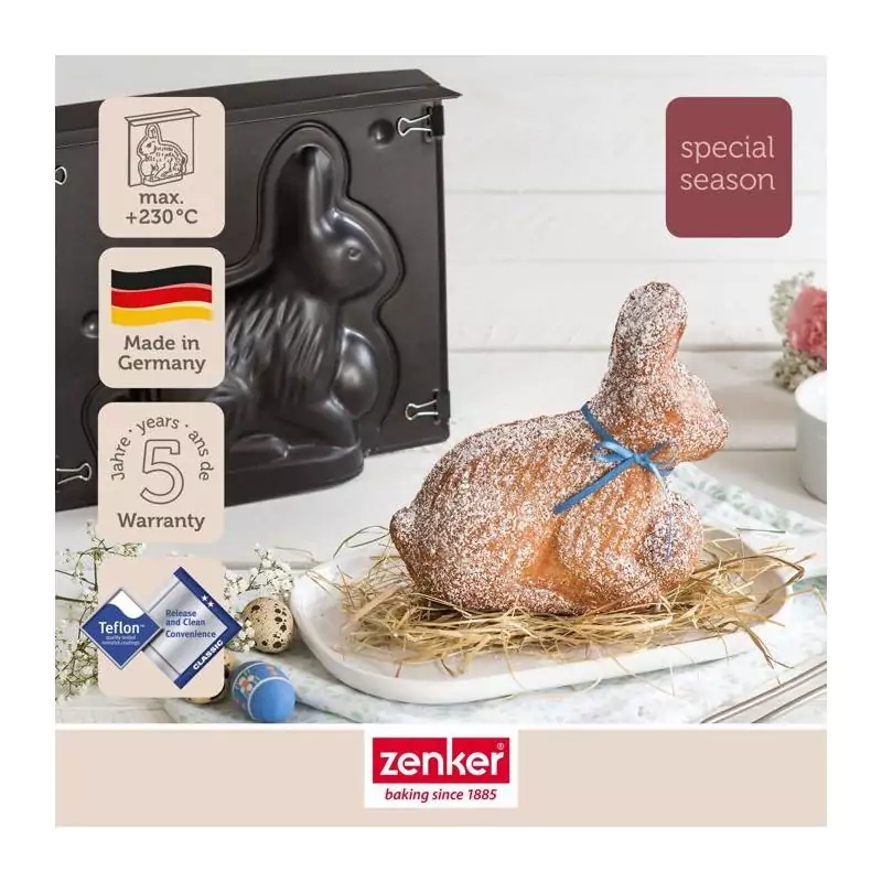 Surprenez vos proches avec des créations originales et savoureuses grâce à l'ensemble de moule lapin de Pâques 3D et 5 emporte-pièces lapin de la marque ZENKER.