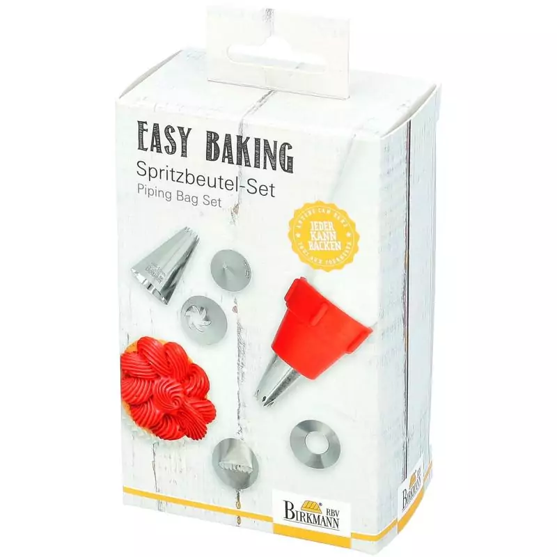 Poche a douille - BIRKMANN - EASY BAKING - Tissu - Inclus 6 douilles + 1 adapteur - 9 x 14,5 x 5,7 cm