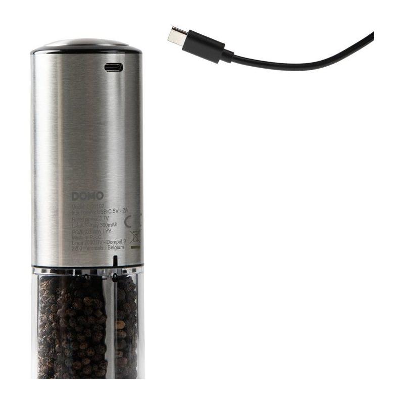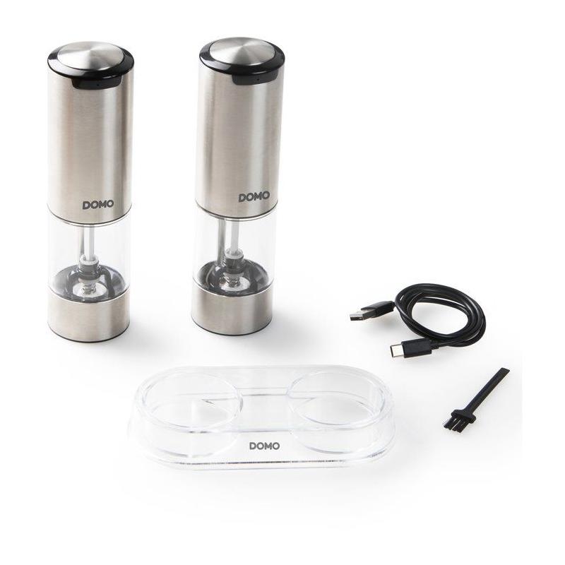 Ensemble de 2 moulins a poivre et sel électriques - DOMO - USB - 96 ml - Transparent / Argent