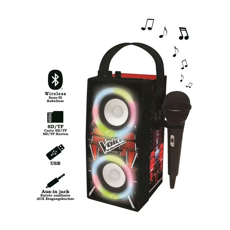 Découvrez notre Enceinte Tendance Bluetooth portable avec micro et effets lumineux The Voice!