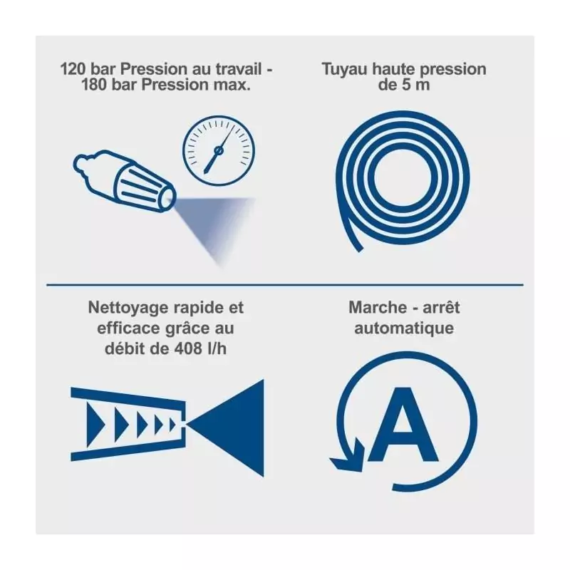 Grâce à sa pression de 180 bar, ce nettoyeur est idéal pour un usage domestique et professionnel. Que ce soit pour nettoyer votre terrasse, votre voiture, vos meubles de jardin ou votre façade, le Nettoyeur haute pression électrique de SCHEPPACH garantit des résultats impeccables en un rien de temps.