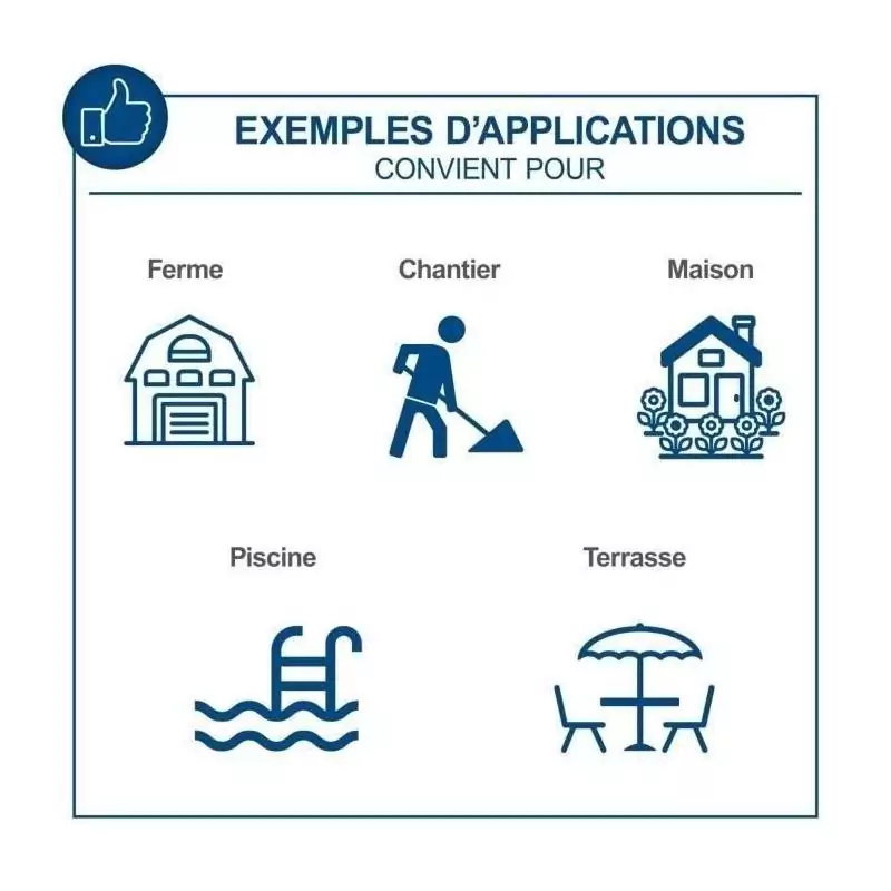 Sa conception ergonomique et compacte facilite son transport et son utilisation. De plus, ses différentes buses et sa lance permettent d'adapter la pression en fonction de la surface à nettoyer, offrant ainsi une polyvalence d'utilisation incomparable.