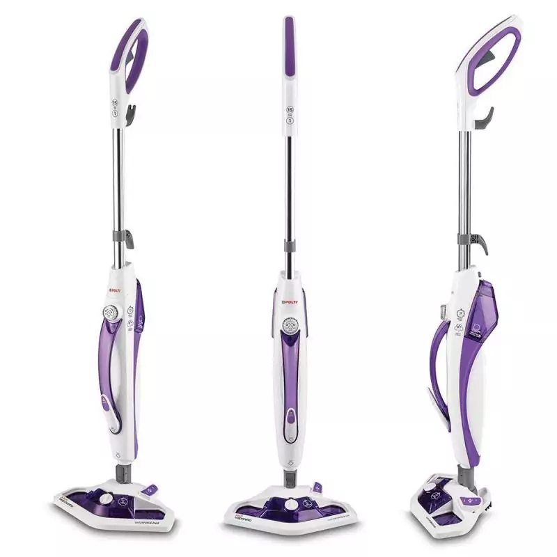 Polti Vaporetto SV440_Double. Type: Steam mop, Capacité: 0,3 L, Couleur du produit: Violet, Blanc. Puissance: 1500 W, Source d'alimentation: Secteur. Surfaces de nettoyage: Sol nu, Tapis, Sol dur, Marches d’escalier, Temps de préchauffage: 15 s, Rayon d'action: 7,5 m. Poids: 2,4 kg, Largeur: 320 mm, Profondeur: 200 mm. Nombre d'accessoires inclus: 11 pièce(s)