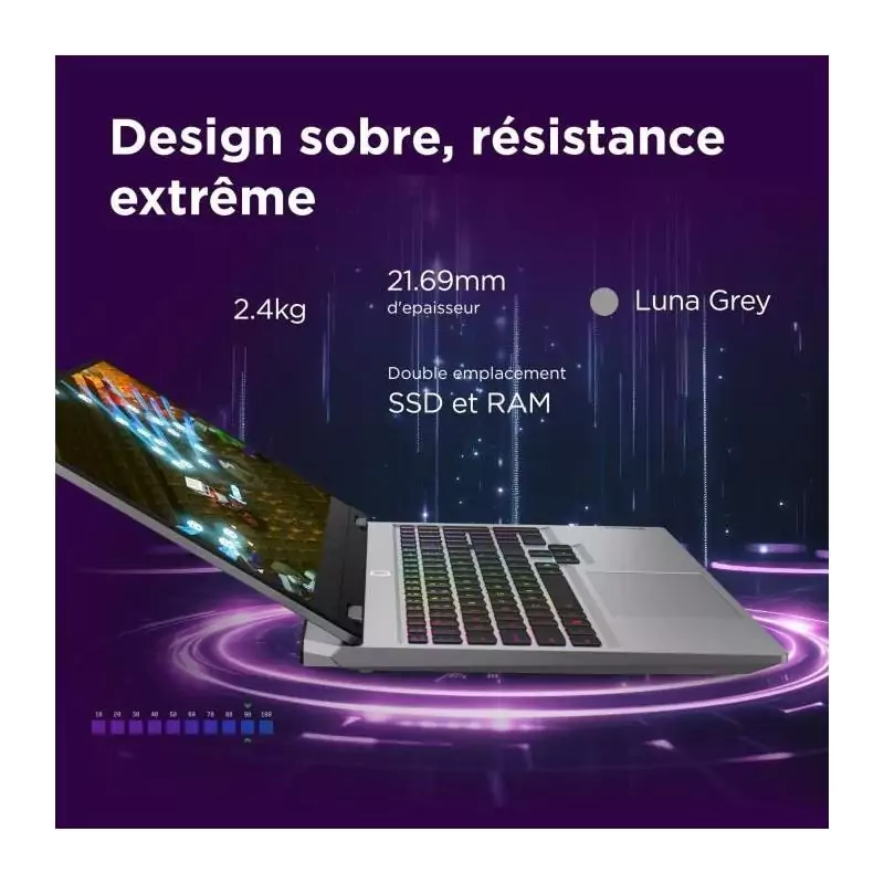 Équipé d'un processeur Core i5-13450HX et d'une carte graphique RTX 5060 100W, ce PC portable offre des performances de pointe pour exécuter les jeux les plus exigeants sans aucun effort. De plus, avec 16 Go de mémoire vive et un disque dur de 512 Go, vous bénéficiez d'un espace de stockage généreux pour tous vos jeux, fichiers et programmes.