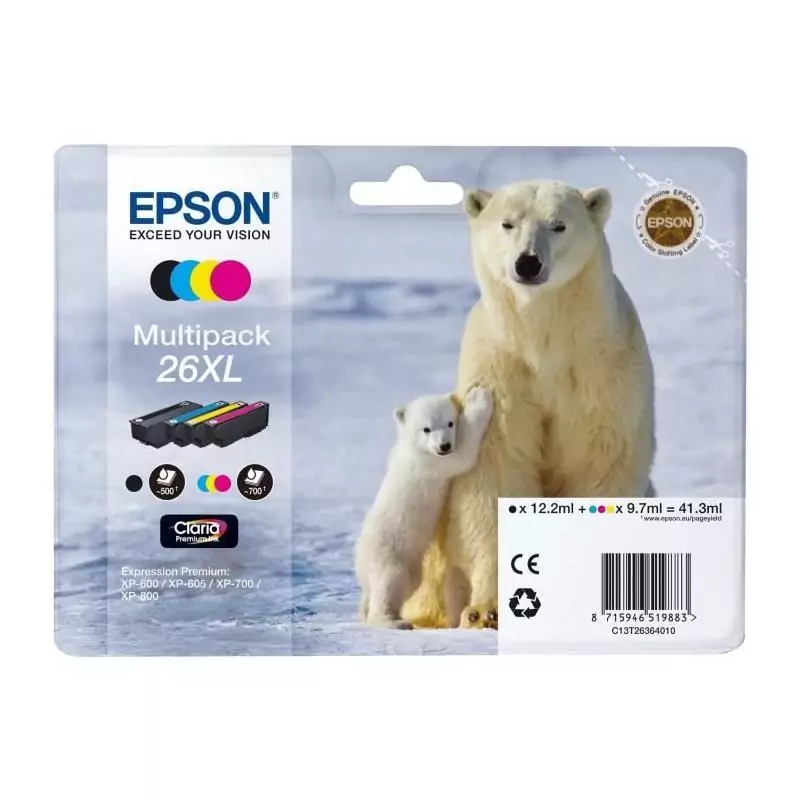 Vous cherchez une solution d'impression de qualité supérieure pour vos besoins professionnels ou personnels ? Ne cherchez pas plus loin que le pack cartouches EPSON Multipack T2636 XL - Ours Polaire. Ce pack polyvalent comprend les couleurs noir, cyan, jaune et magenta, vous offrant une gamme complète pour des impressions éclatantes et durables.