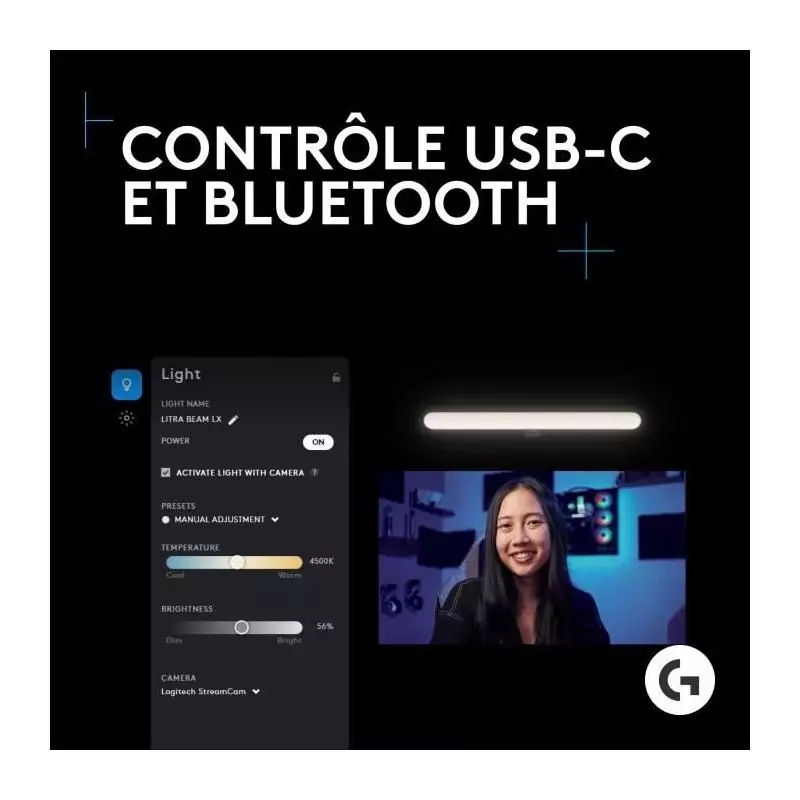 Ring Light gamer - Filaire - Logitech G - Litra Beam LX - USB - LED RVB - Noir
