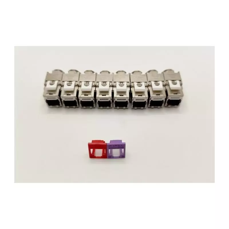 Pack de 8 noyaux keystone RJ45 Cat.6a - LINEAIRE - PRC624AK8 - 2 avec façades colorées