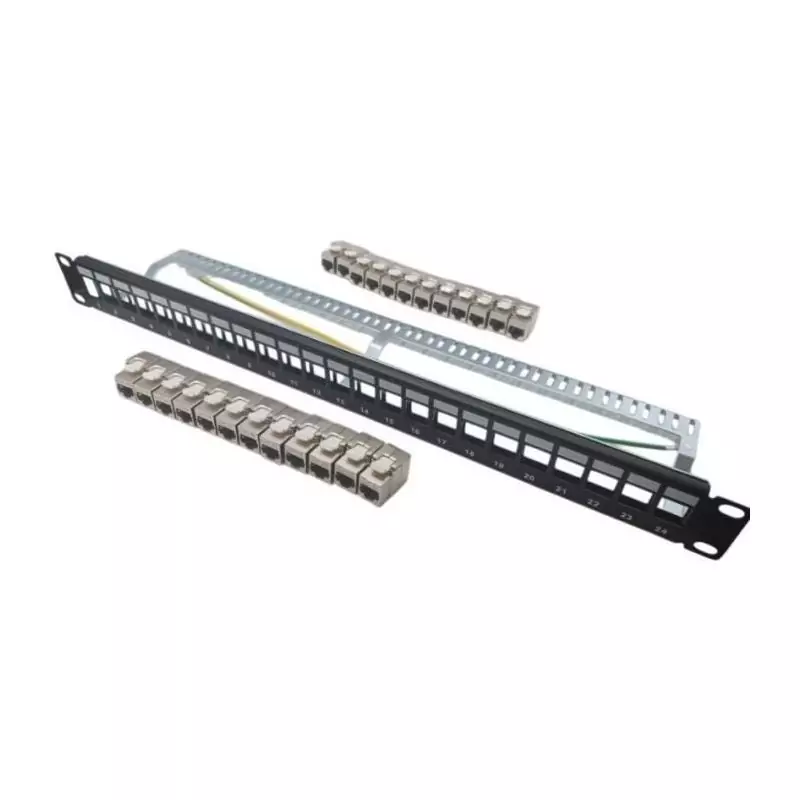 Panneau de brassage 24 ports + 24 noyaux keystone RJ45 Cat.6a - LINEAIRE - KIT5024AS - Courts - Blindés