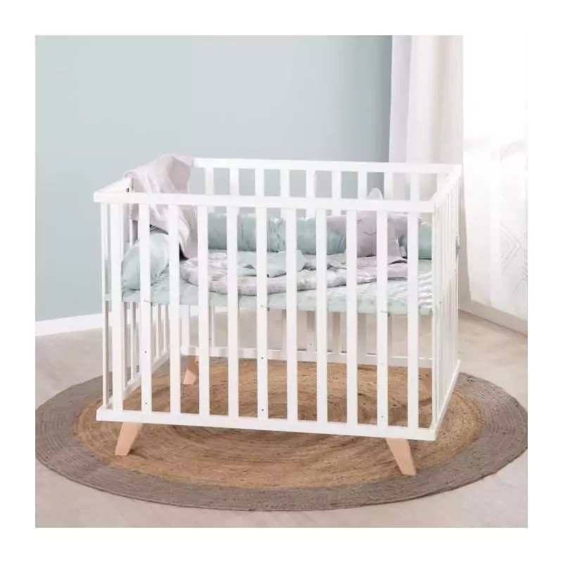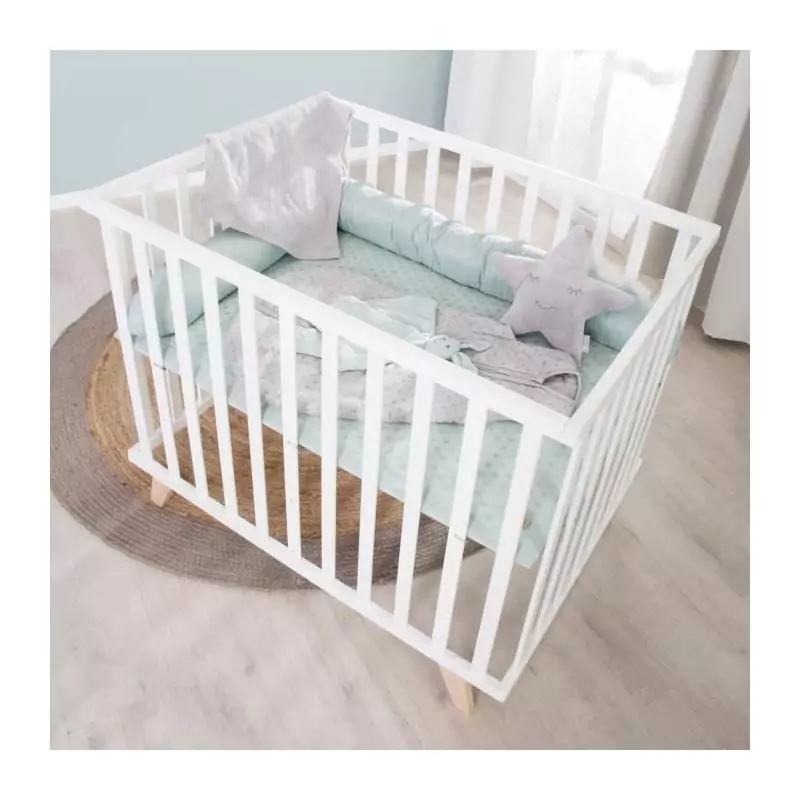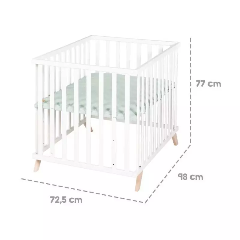 Parc bébé - ROBA - 75 x 100 cm - Tapis de parc 'Lil Planet' vert givré inclus - Blanc