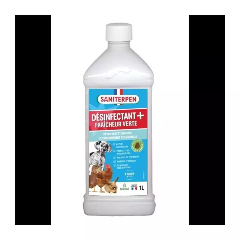 SANITERPEN Plus 1L - Désinfectant fraicheur Verte - Bactéricide, parfum Pin des Landes, toléré par animaux