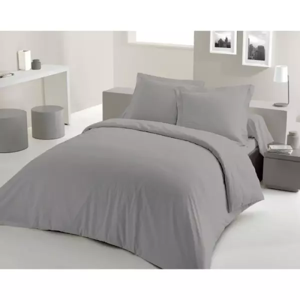 PARURE DE COUETTE LOVELY HOME - 220x240 cm - 100% COTON - GRIS CLAIR