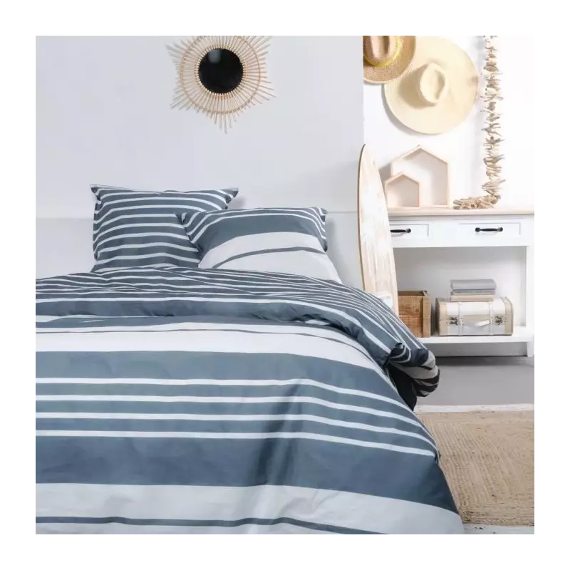 Fabriquée en 100% coton, cette housse de couette offre une douceur et un confort inégalés pour des nuits paisibles et réparatrices. Sa couleur bleue et blanche apporte une touche de fraîcheur et d'élégance à votre chambre à coucher.