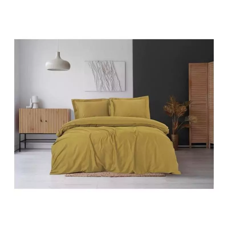 Le tissu satiné en coton 100% offre non seulement un toucher doux et agréable, mais il est également respirant et confortable pour des nuits paisibles. La couleur moutarde apporte une touche de chaleur et de sophistication à votre espace de sommeil, ajoutant une ambiance cosy et tendance.
