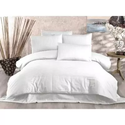 Parure de lit - 1 housse de couette 220 x 240 cm + 2 taies d'oreiller 60 x 60 cm - 70% polyester, 30% coton - Blanc