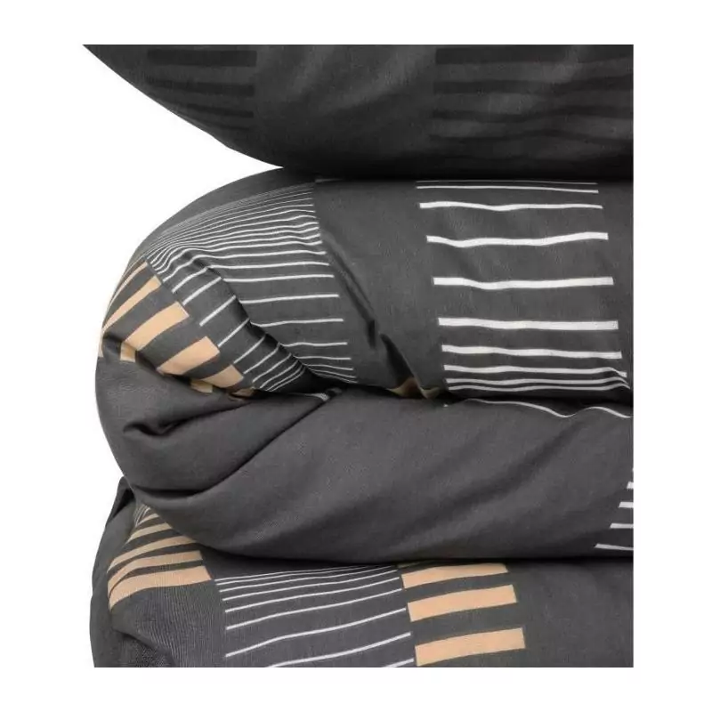 L'anthracite profond de cette parure apportera une touche élégante et moderne à votre décor, tout en s'adaptant facilement à différents styles de chambre. La housse de couette se ferme grâce à des boutons discrets, assurant un maintien parfait de votre couette tout en ajoutant une touche de sophistication à l'ensemble.
