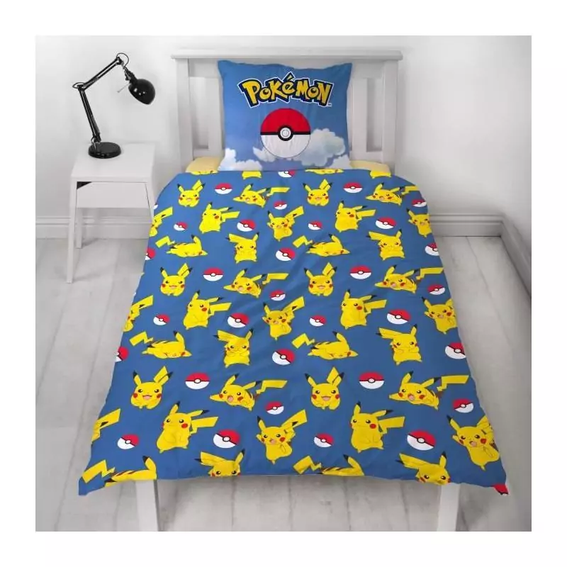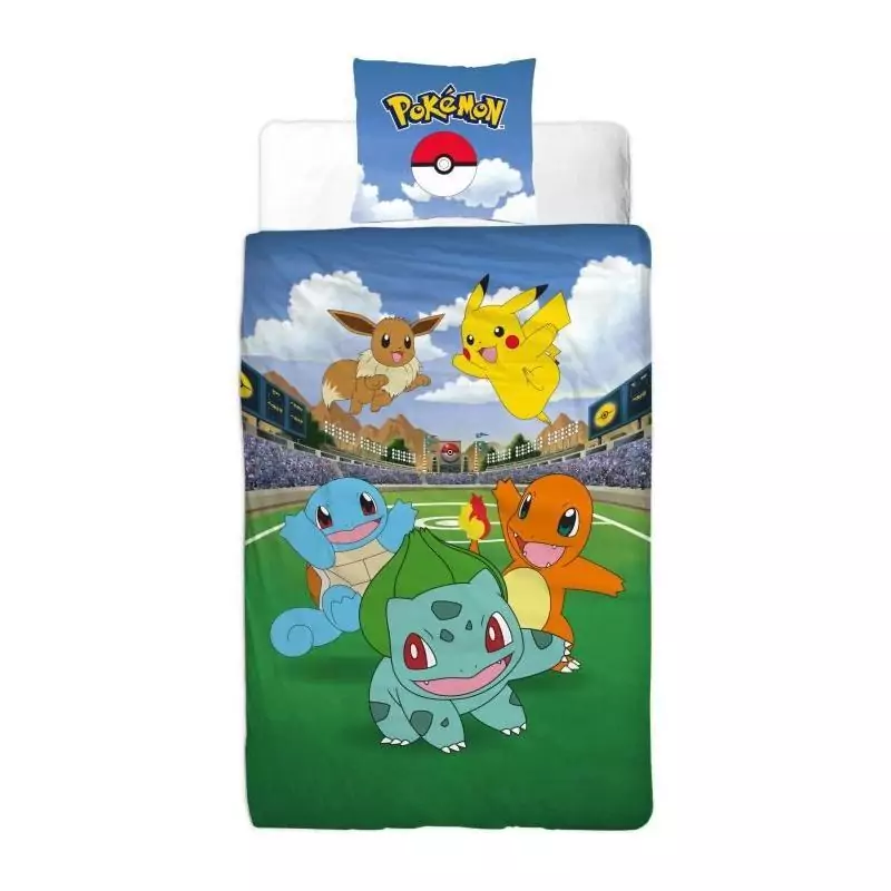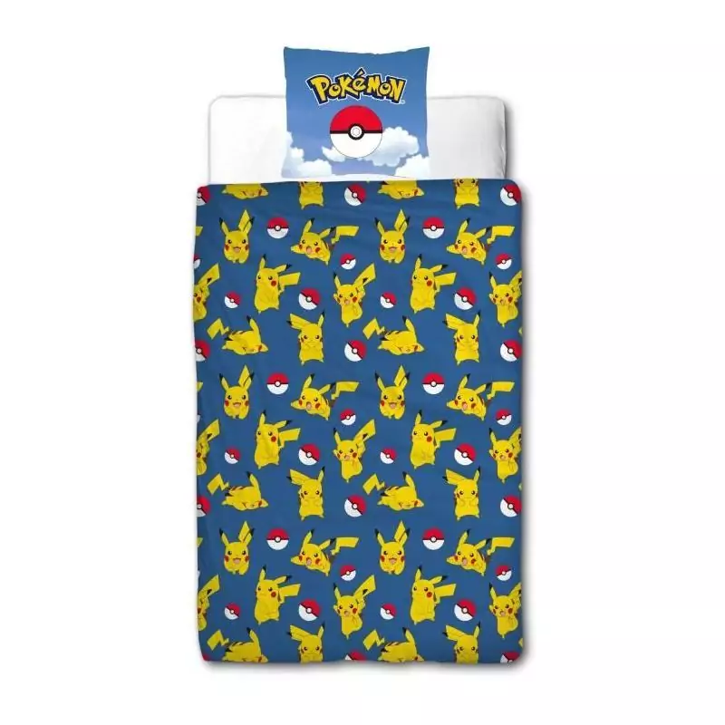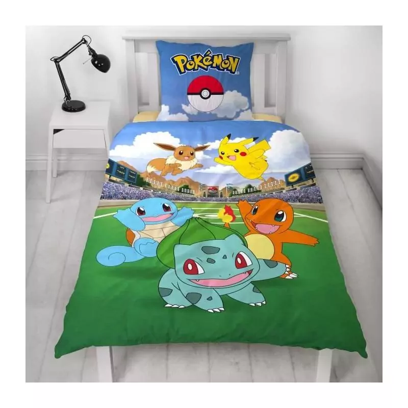 La parure de lit réversible POKEMON est un incontournable pour tous les fans de Pikachu et ses amis. Avec ses couleurs vibrantes et son design amusant mettant en scène les célèbres personnages à l'Arena, cette parure ajoutera une touche de fantaisie à la chambre à coucher.