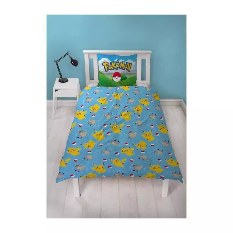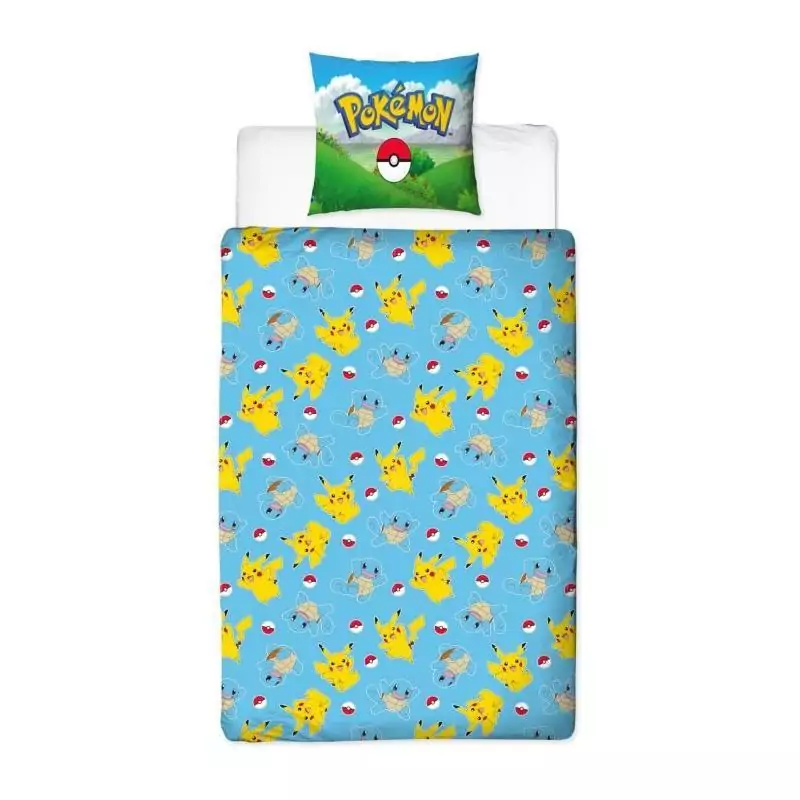 Cette magnifique parure de lit aux couleurs vives de POKEMON est parfaite pour tous les fans de ce célèbre dessin animé. Avec Pikachu et ses amis en vedette sur un fond bleu dynamique, cette parure ajoutera une touche de fantaisie à n'importe quelle chambre à coucher.