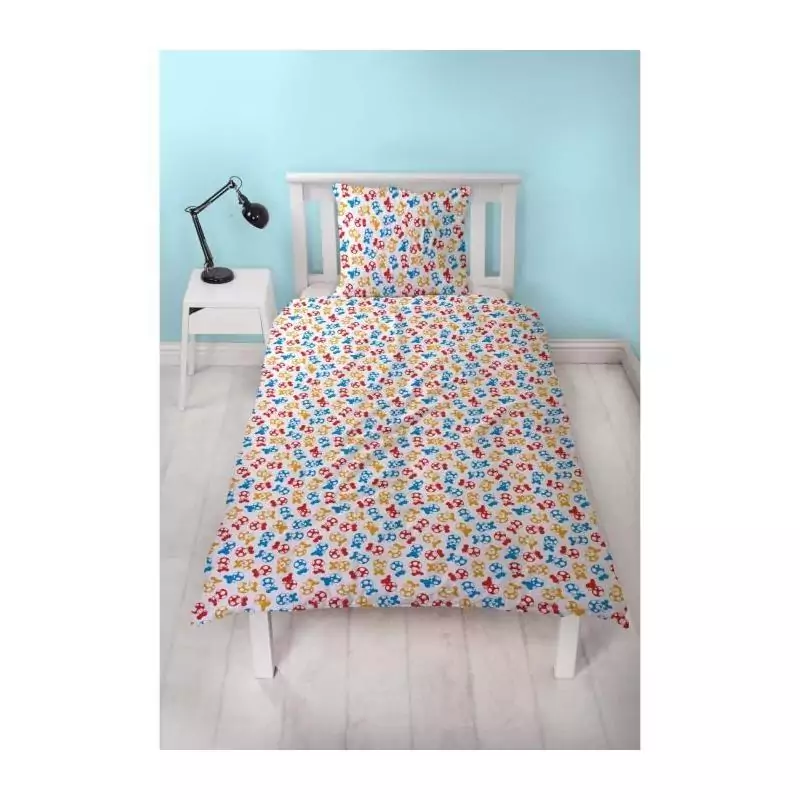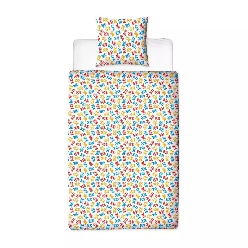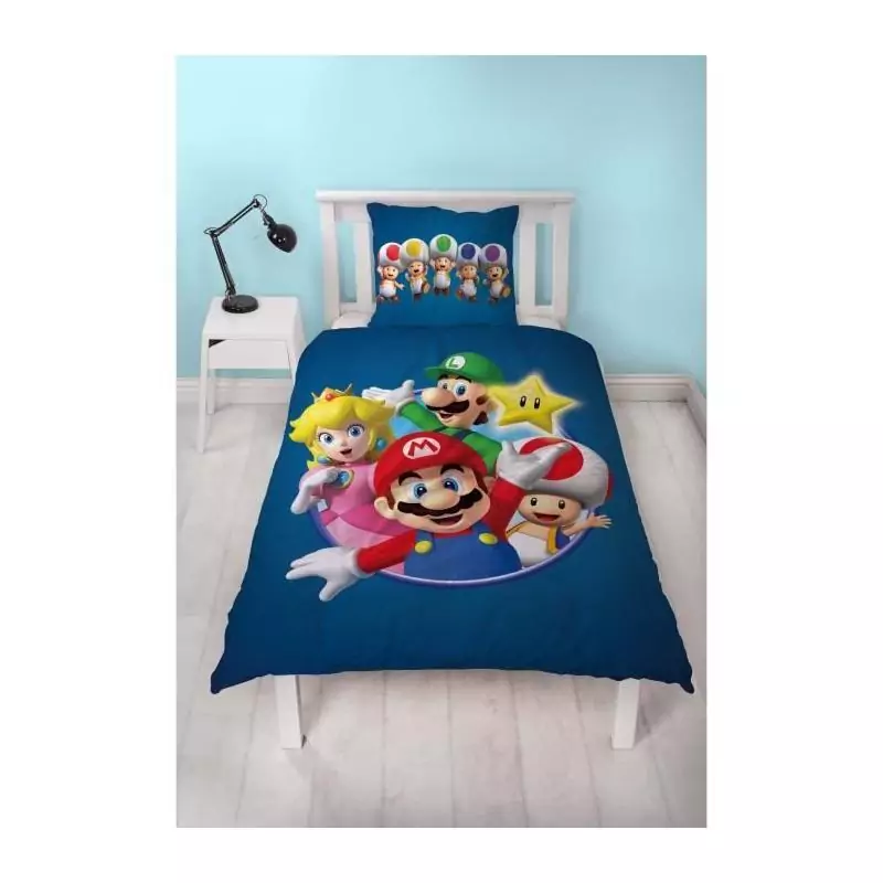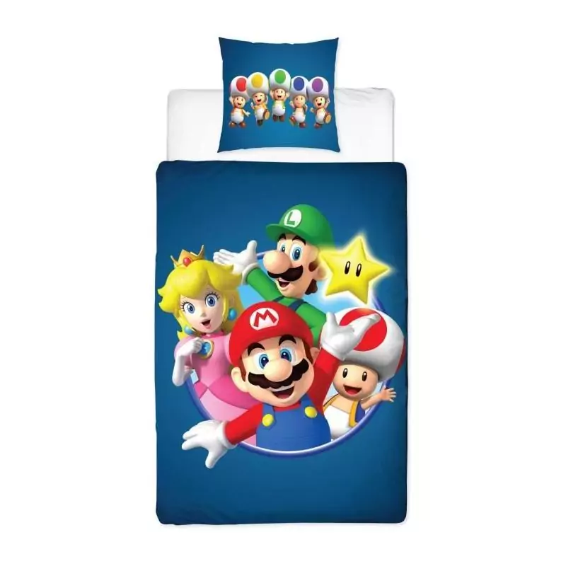 Voici une parure de lit réversible qui ravira tous les fans de Mario Bros et de ses amis ! Fabriquée en microfibre de haute qualité, cette parure se compose d'une housse de couette 140 x 200 cm et d'une taie d'oreiller 63 x 63 cm assortie.