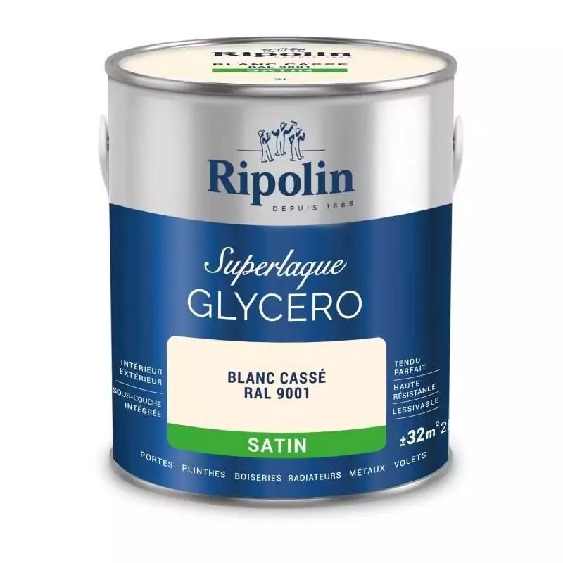 Optez pour la qualité et la performance avec la laque glycéro blanc cassé RAL 9001 satin de RIPOLIN - un choix sûr pour sublimer vos surfaces avec style et élégance.