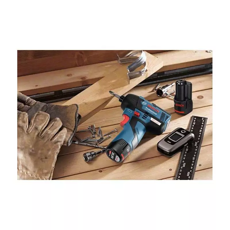 Bosch GDR 12V-110 Professional. Type de produit: Douille à choc. Dimension de l'entraînement: 1/4", Couple (max): 110 N·m, Vitesse de rotation (ralenti) (1ère vitesse): 1200 tr/min. Source d'alimentation: Batterie, Technologie batterie: Lithium-Ion (Li-Ion), Capacité de la batterie: 2 Ah. Largeur: 54 mm, Profondeur: 139 mm, Hauteur: 177 mm. Diamètre de vis: M12, M4, Taux d'impact: 3100 bpm