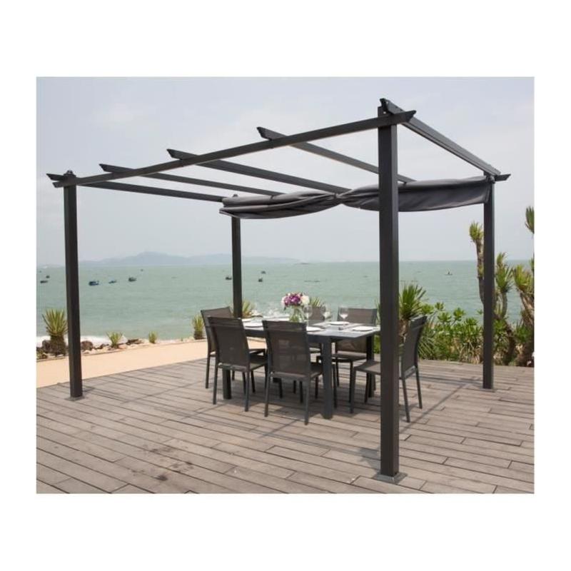 Conçue en aluminium de haute qualité, cette pergola est à la fois robuste et légère, assurant une durabilité exceptionnelle tout en étant facile à déplacer selon vos besoins. Sa couleur grise moderne s'intègre harmonieusement dans n'importe quel environnement extérieur, ajoutant une touche de style contemporain à votre espace de vie en plein air.