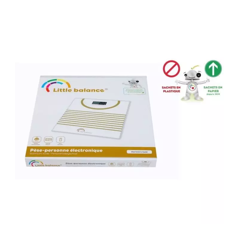Faites le choix de la performance et du style avec la balance électronique LITTLE BALANCE Marinière Gold. Un accessoire indispensable pour suivre votre évolution et prendre soin de vous en toute simplicité.