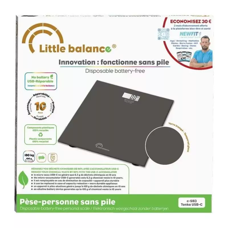 Le Pese-personne Little Balance SB3 USB-C Tonka se distingue par sa précision et sa fiabilité. Son design élégant et sa plateforme antidérapante en font un appareil à la fois pratique et esthétique pour votre salle de bain.