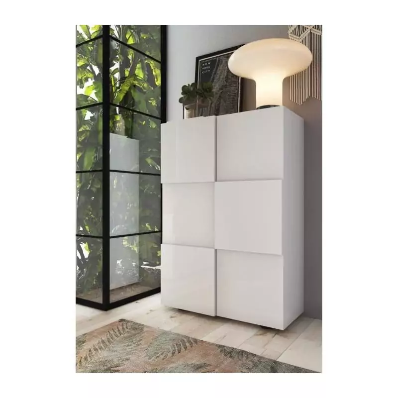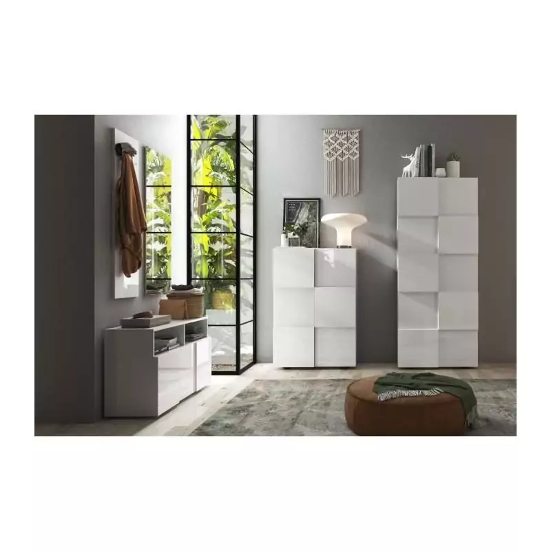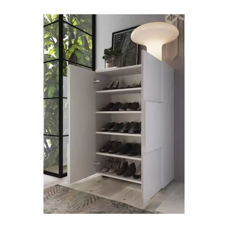 Meuble a chaussures - 15 paires - Blanc laqué - L78 x P33 x H113 cm - MILANO
