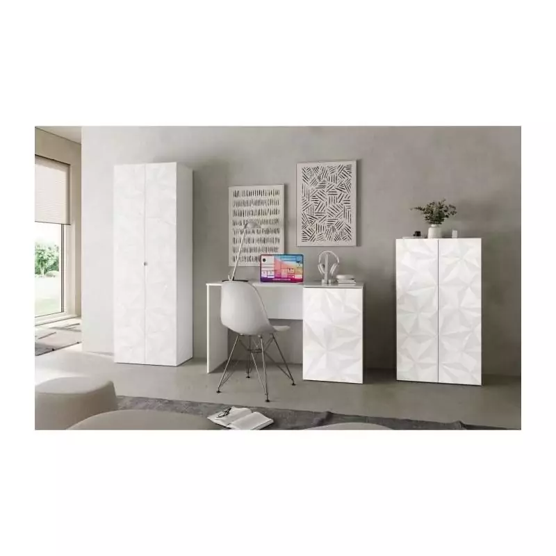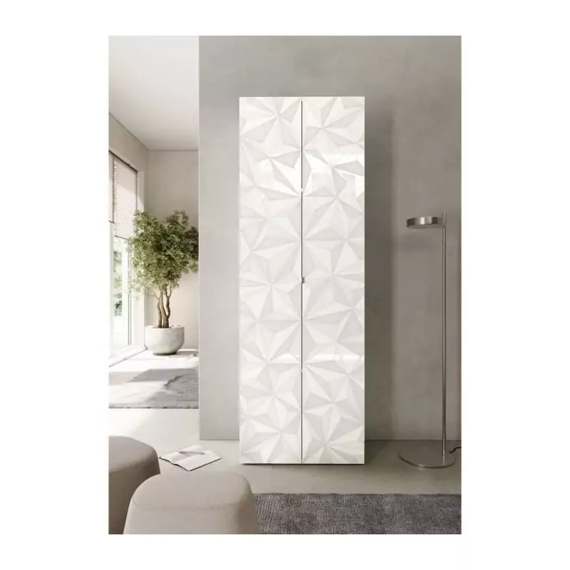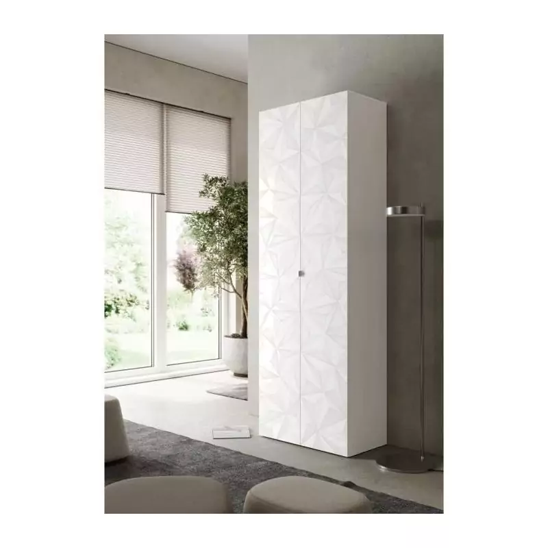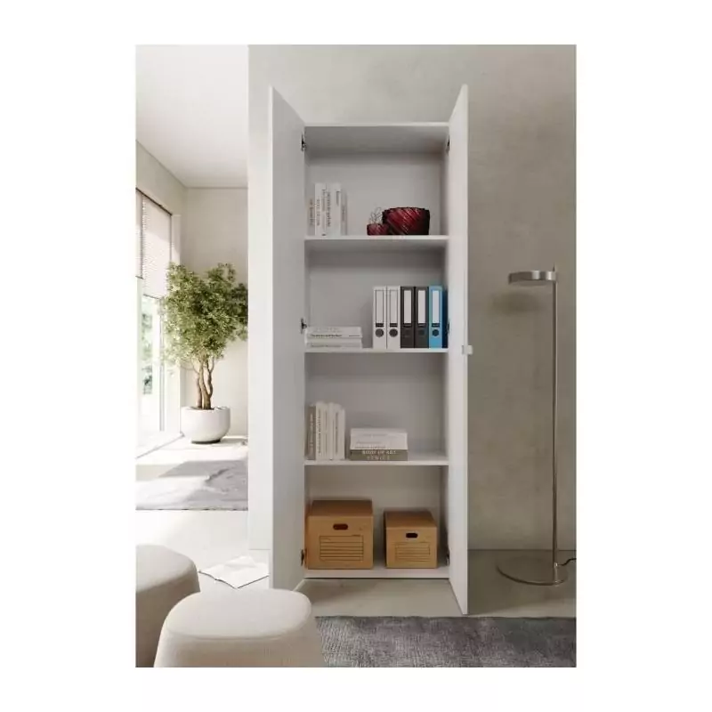 Armoire de rangement - 2 portes - 3 étageres - Blanc laqué - L63 x P35 x H184 cm - PARIGI