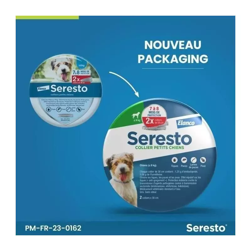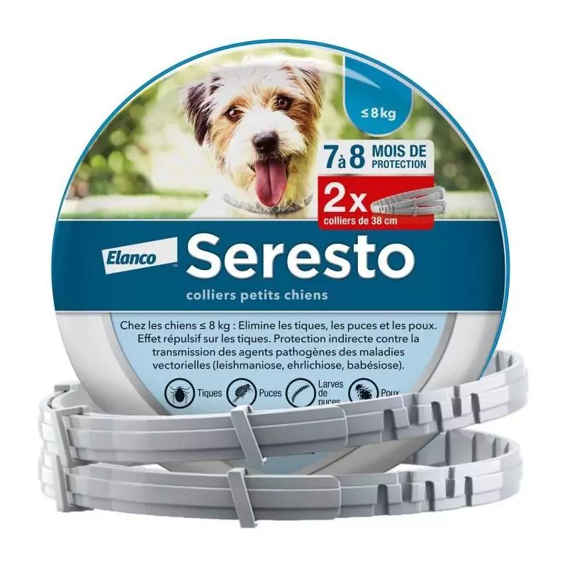 SERESTO Chien Collier Anti-Puces et Anti-Tiques -8kg 2 unités