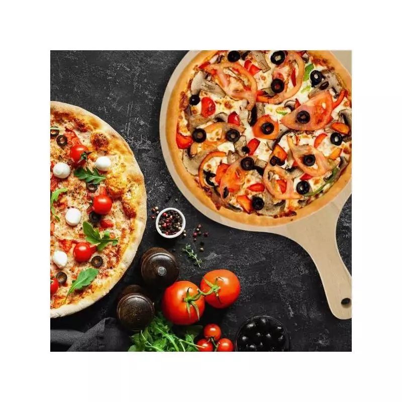 Set de 2 Planches a pizza et tarte flambée en bois et Roulette a pizza en inox - FACKELMANN - 30 cm