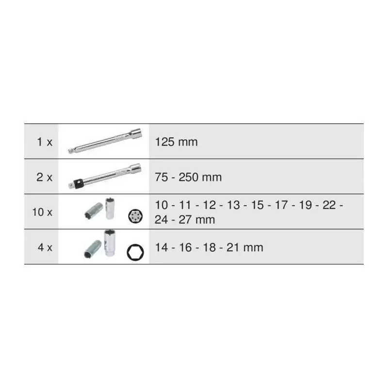 Les douilles longues incluses dans ce module sont fabriquées avec des matériaux de haute qualité pour assurer une durabilité exceptionnelle. Elles sont spécialement conçues pour atteindre les endroits difficiles d'accès et offrir un couple de serrage optimal. De plus, les accessoires fournis vous permettent de personnaliser votre outil en fonction de vos besoins spécifiques.