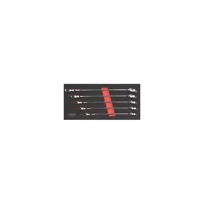 Avec ce module, vous disposez de 5 clés mixtes de haute qualité pour effectuer tous types de travaux mécaniques. Chaque clé possède une extrémité plate et une extrémité à cliquet, offrant ainsi une polyvalence optimale.