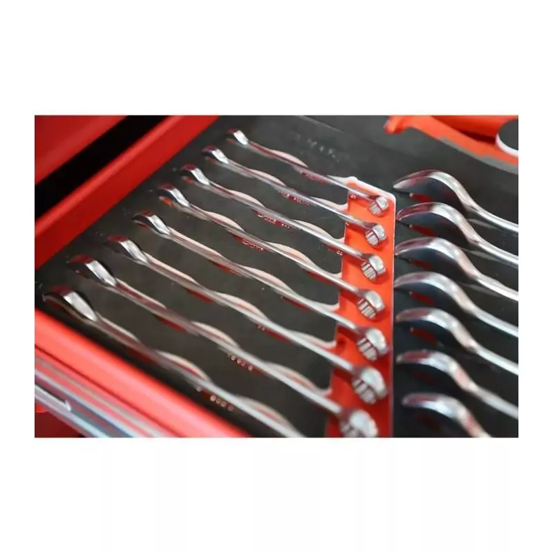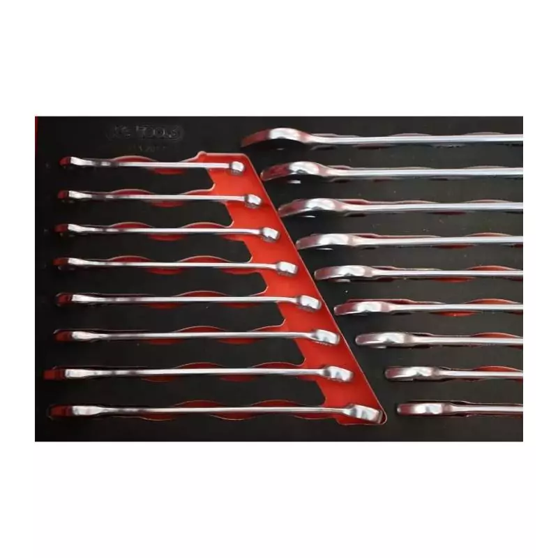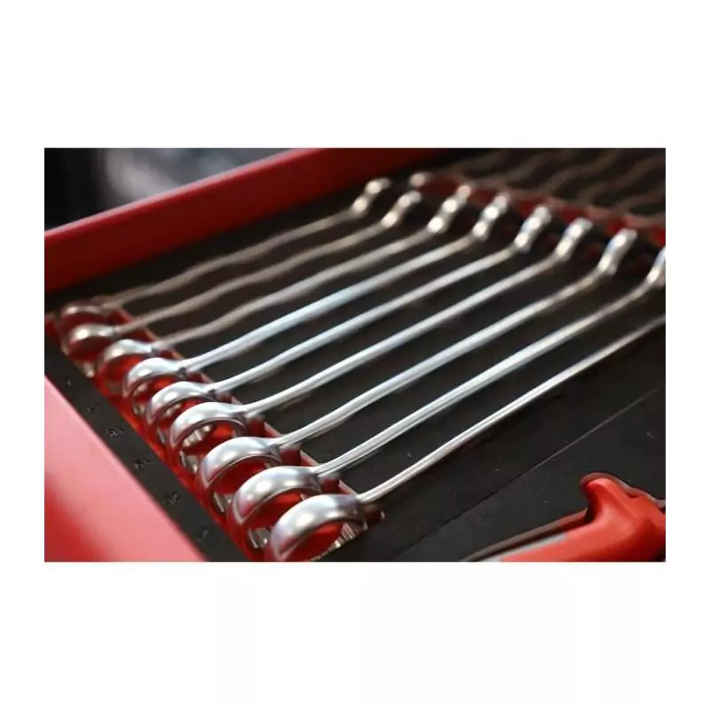 Avec un total de 17 clés, allant de 6 à 22 mm, ce module couvre une large gamme de tailles couramment utilisées dans les travaux mécaniques et de maintenance. Chaque clé est fabriquée avec précision en acier chrome vanadium, garantissant une durabilité et une résistance exceptionnelles aux torsions et aux chocs.