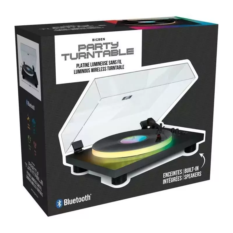 Tourne-disques BIGBEN INTERACTIVE PARTYBTTDLIGHT - Plateau lumineux - Entraînement par courroie - Bluetooth - Effets lumineux