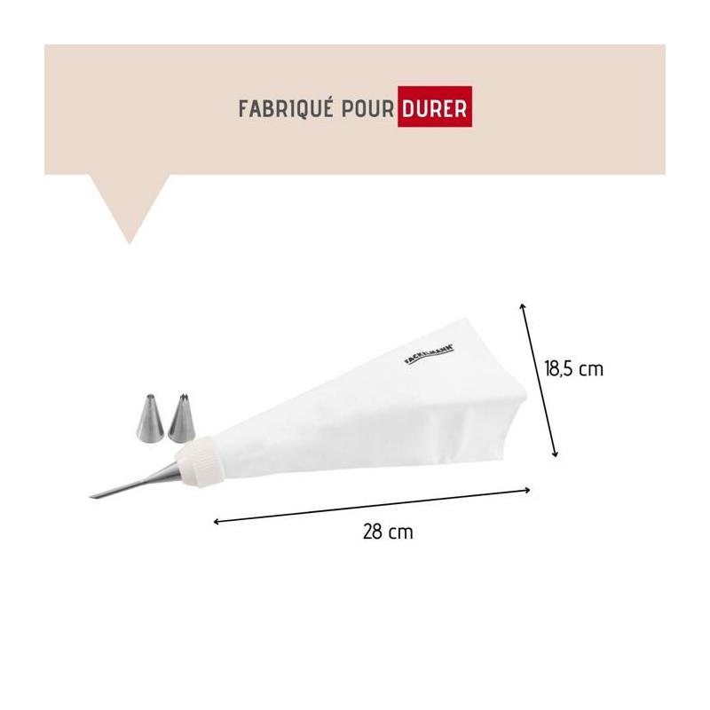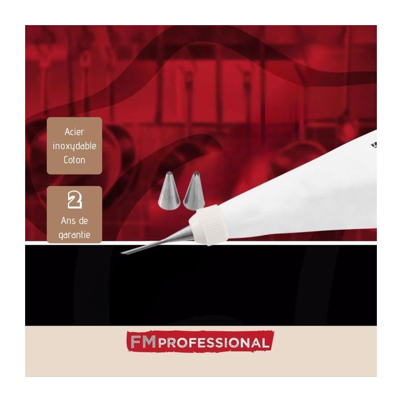 Poche a douille professionnelle - FM PROFESSIONAL - Réemployable - 3 douilles inox - 28 cm