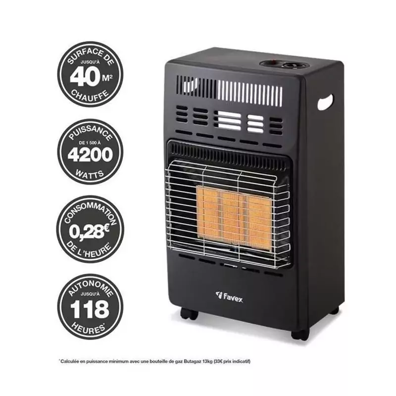 Ne laissez pas le froid vous envahir, optez pour le Chauffage d'appoint infrarouge au gaz butane KERN et profitez d'une chaleur douillette où que vous soyez dans votre maison.