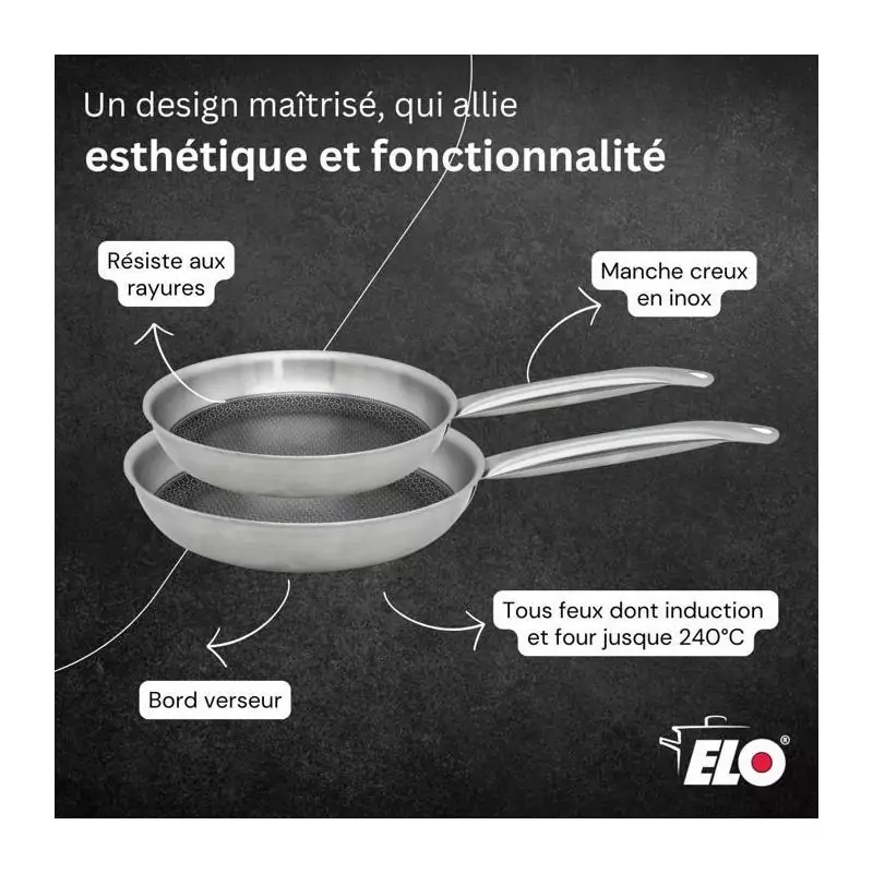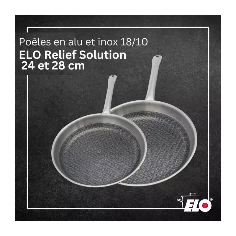 Set de 2 poeles a induction - ELO - Relief Solutions - Inox 18/10 ELODUR Select antiadhésives – Ø?24?et 28?cm