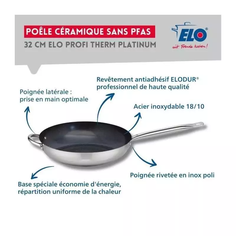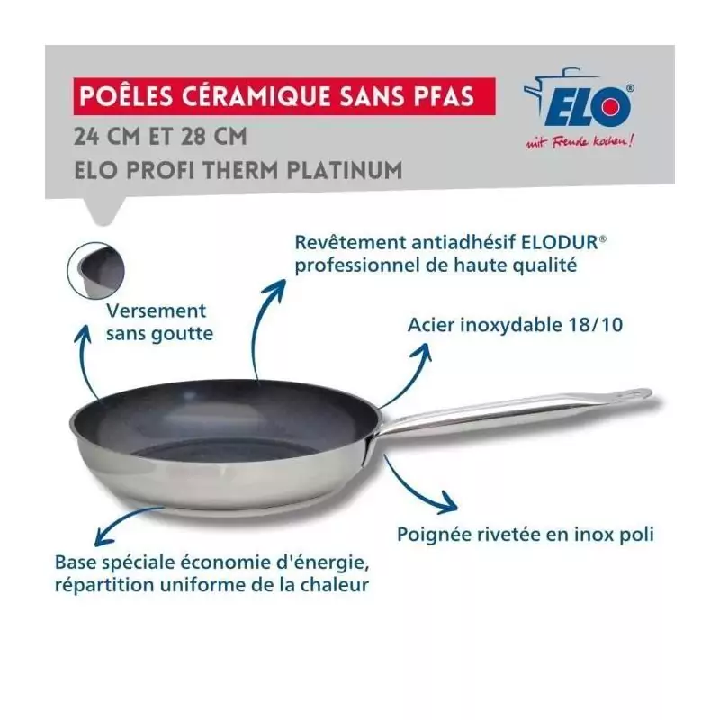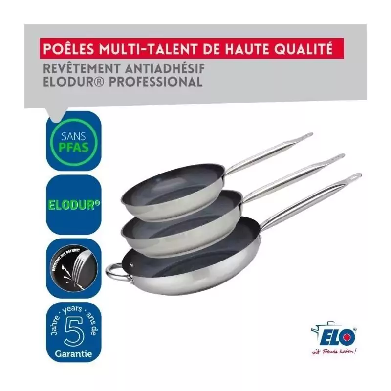Set de 3 poeles a induction - ELO - Professional - Inox 18/10 ELODUR - Ø 24-28 et 32 cm