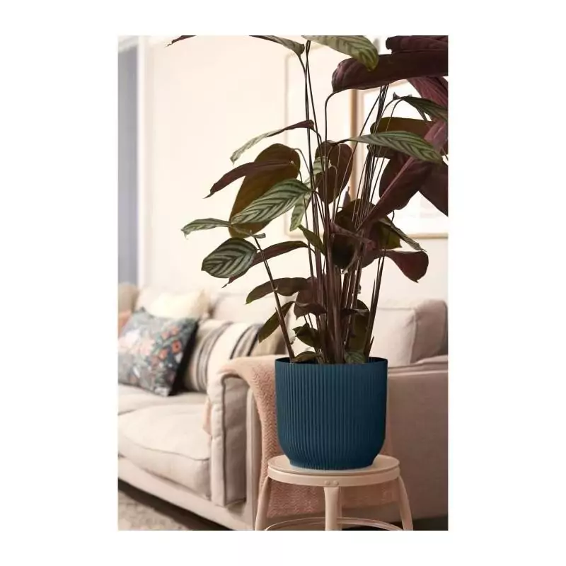 Le pot de fleurs ELHO Vibes Fold est un choix écologique et esthétique pour apporter une touche de verdure à votre intérieur. Ce pot rond bleu mesure Ø 35 x H 32 cm et est fabriqué à partir de plastique recyclé à 100%.